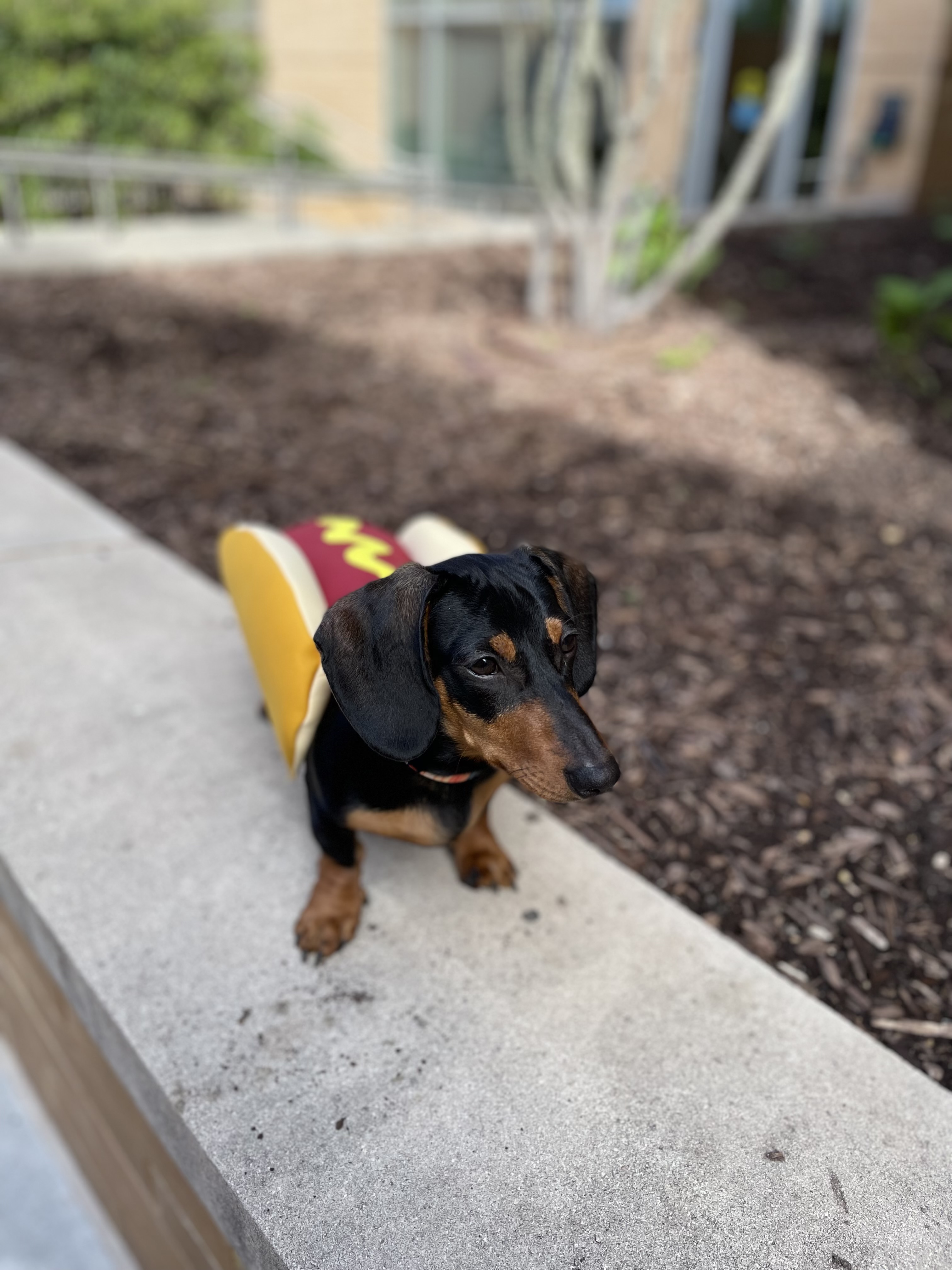 My fiancé and I dressed up as a Target employee and Target shopping bag. He got the easier side of the paired costume, as I had to hop around all night pretending that I had a rounded shopping bag bottom and had no legs. My pain at least led to us winning a costume contest! Unfortunately I don’t have a good picture, so instead here’s a picture of our dog, Milo, dressed up in his favorite Halloween costume.